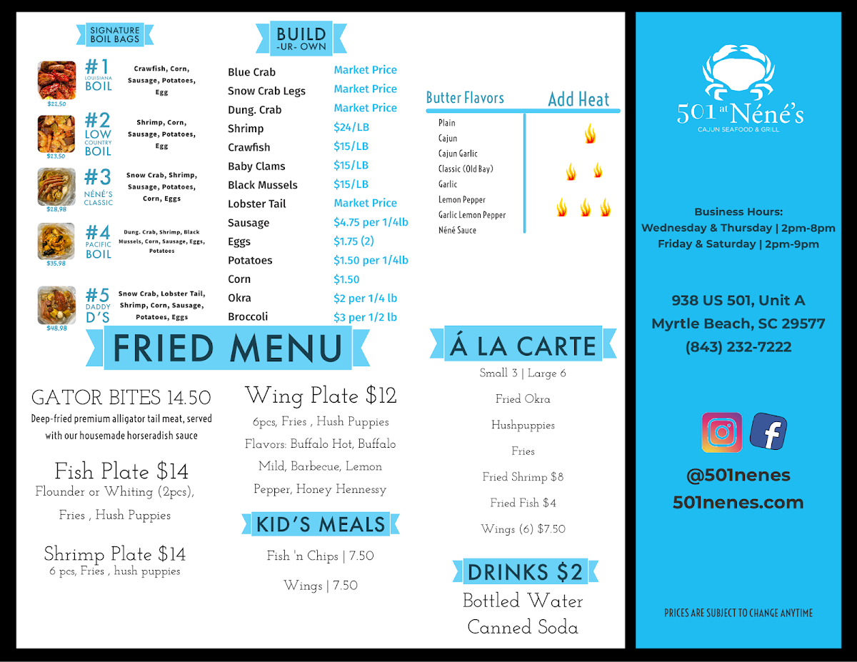Welcome to 501 at Néné's - Takeout, where flavor meets convenience in Myrtle Beach! Located at 938A US-501, this eatery specializes in mouthwatering seafood and comfort dishes designed for takeout bliss.